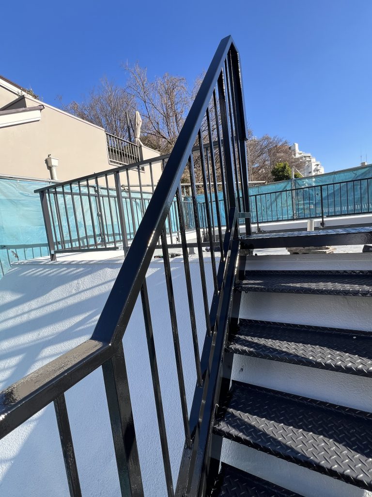階段や手すりが美しく生まれ変わり、錆による劣化を防ぐことができました。