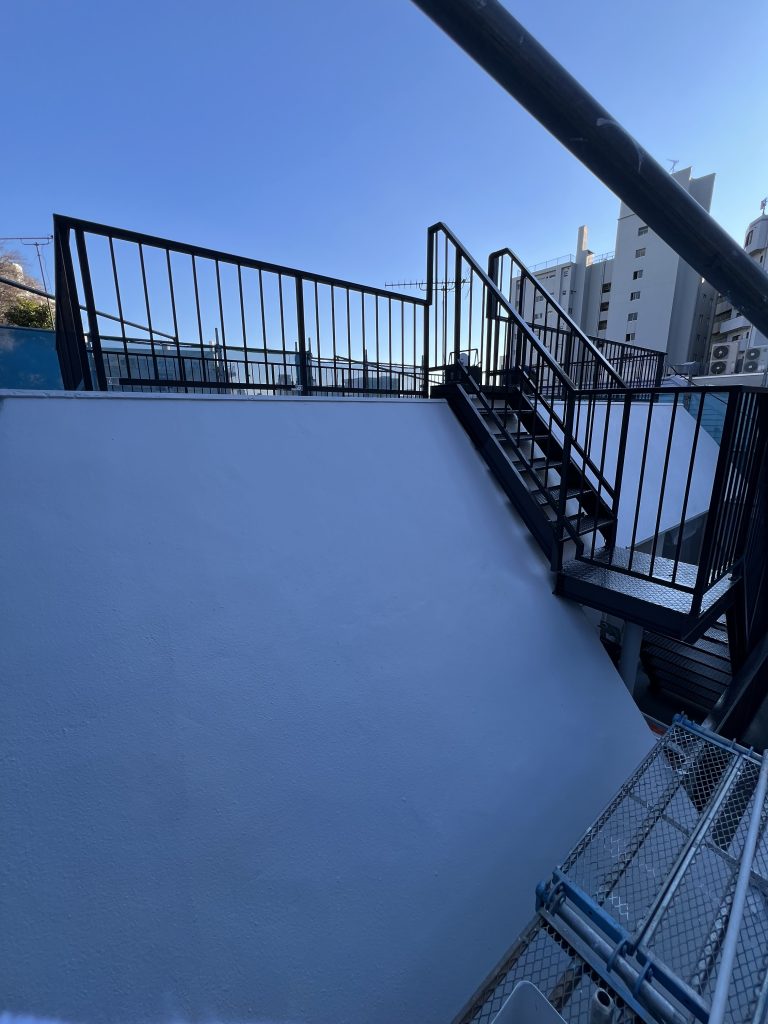 鉄部(手すり・階段など)は、長年の風雨による錆が目立っていました。屋上へ上がる際に上り下りで掴む手すり部分大人や特に小さなお子様が手を触れる機会が多い部分なので、安全性を考慮し、弊社自慢の職人が研磨回数を増やし丁寧に処理しました。