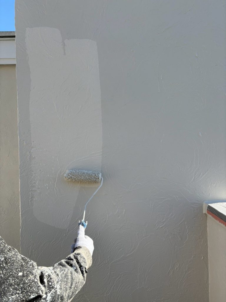 外壁塗装作業中の写真(ローラー塗装)